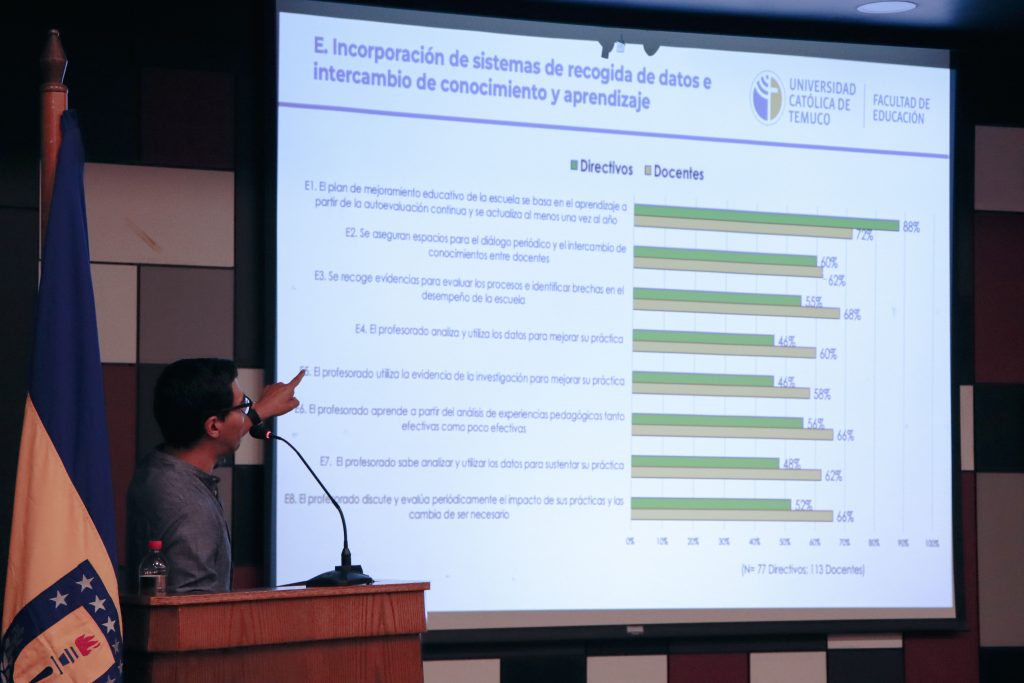 “Los resultados que hemos encontrado son alentadores: la política educativa está orientando cada vez mejores prácticas para tomar decisiones y construir conocimiento profesional en virtud del dato, pero todavía hay brechas: todavía los liceos están desafiados a construir una visión compartida sobre cómo utilizar los datos, para qué utilizarlos y atribuirles sentido con todos los actores de la comunidad”, explicó el académico de la Universidad Católica de Temuco, Dr. Omar Aravena Kenigs, también expositor del encuentro.